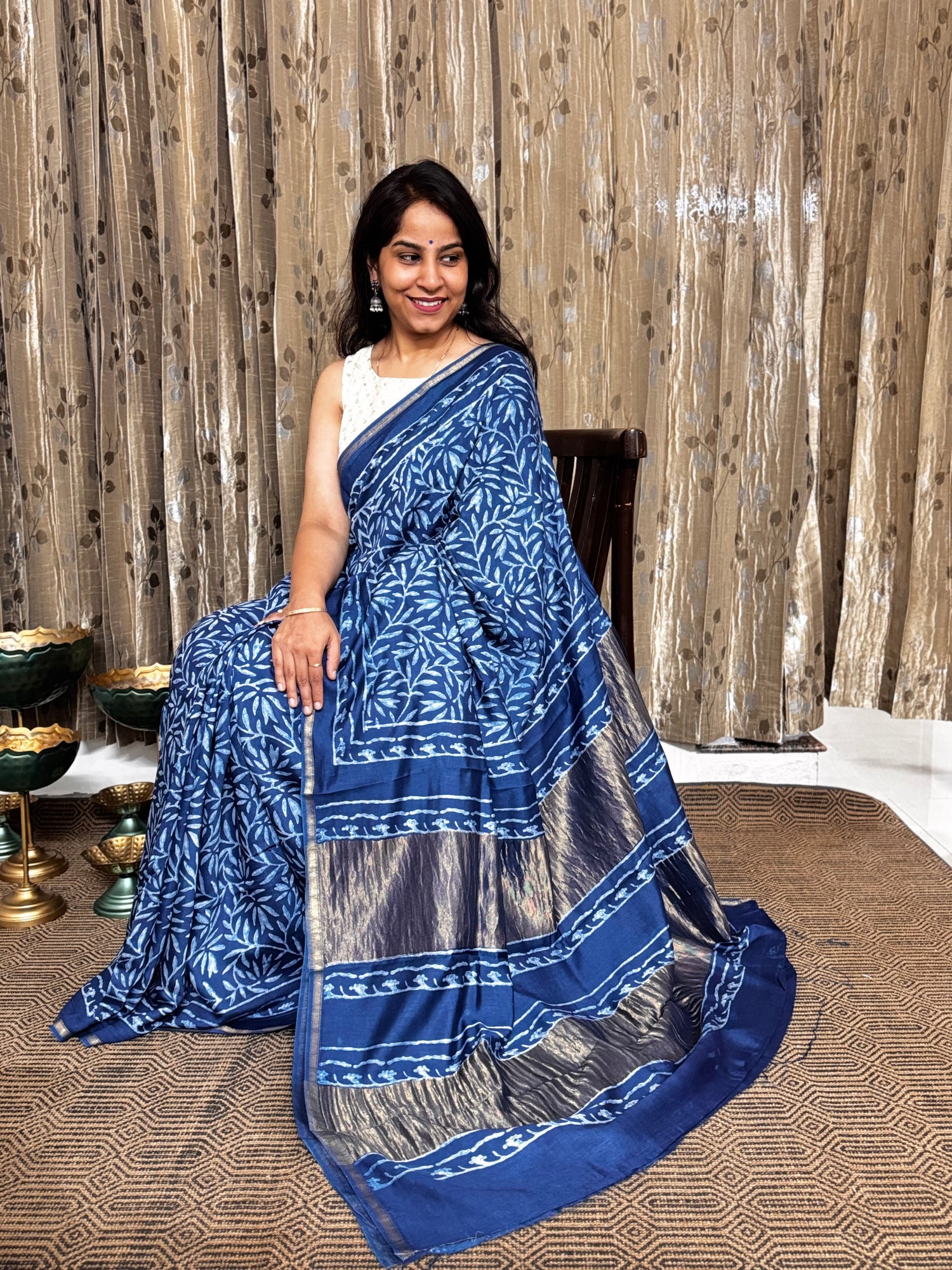Blue Maheshwari Silk Cotton Zari Saree