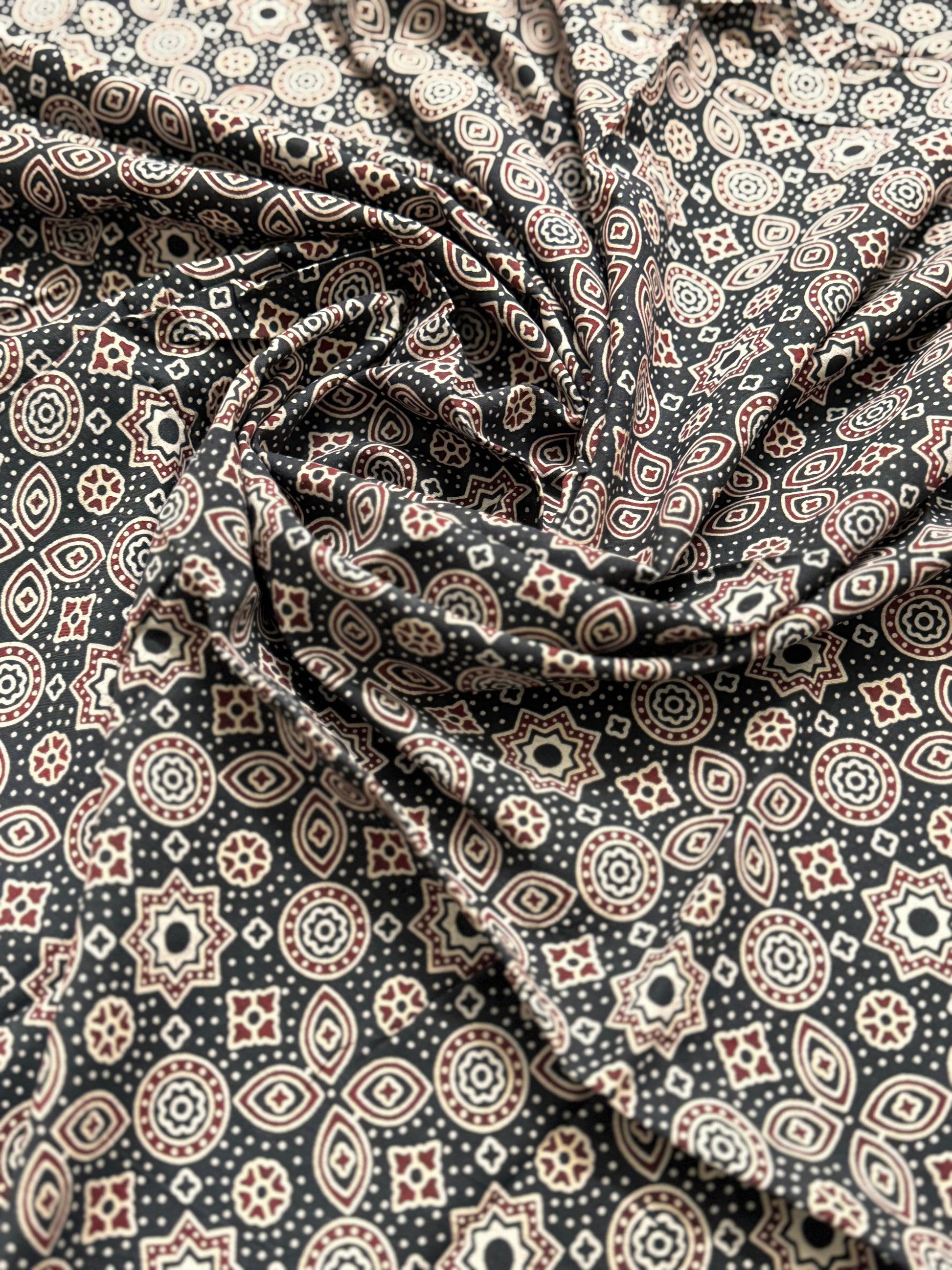 - Blouse Piece: It comes with a BLACK AJRAKH HAND BLOCK PRINT Cotton blouse piece (100 cm). The last image gives a detailed look of the blouse piece that comes with this saree.