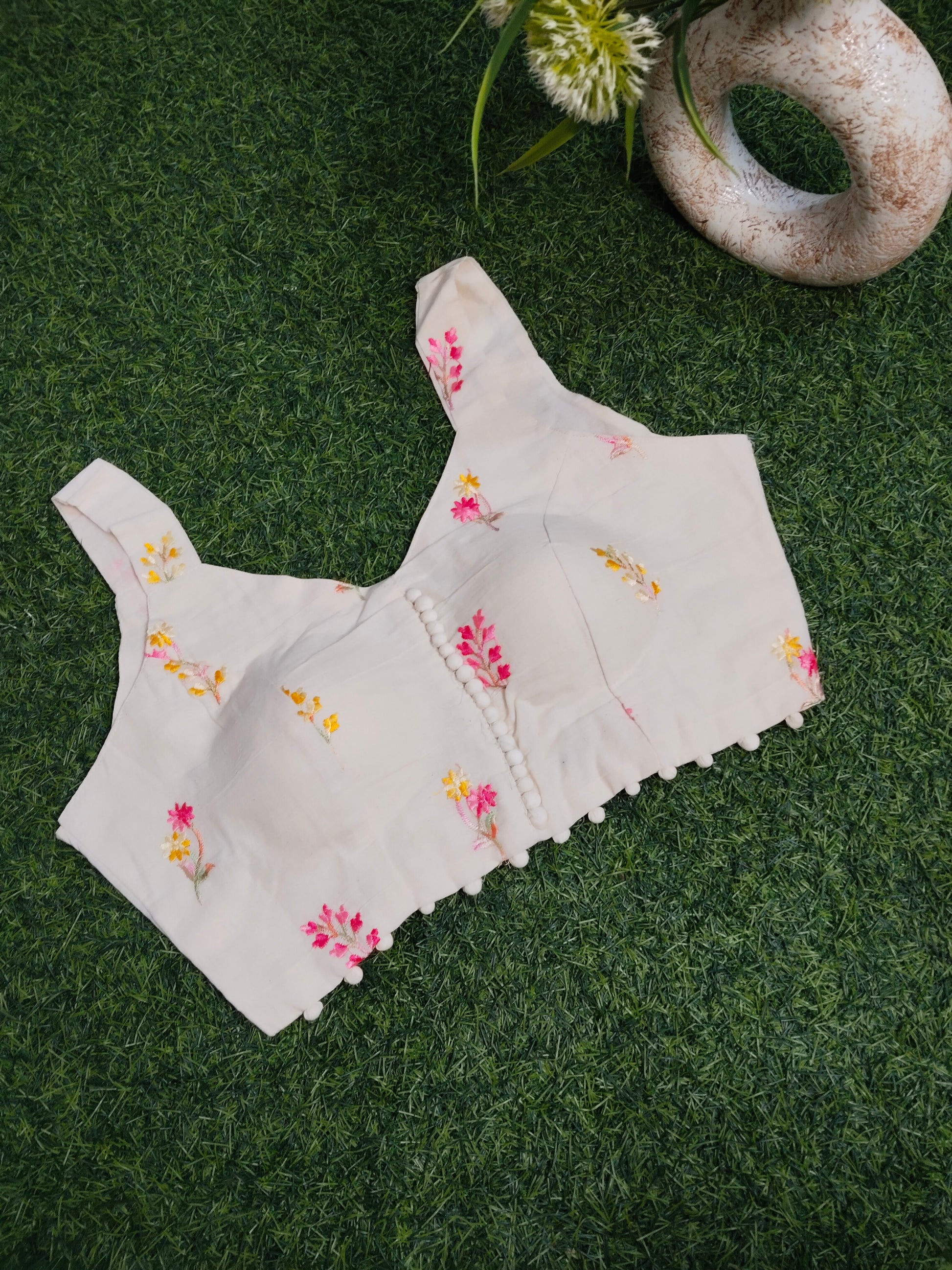 Crafted from pure khadi cotton, these blouses are designed to offer comfort while elevating the elegance of your saree look. Featuring vibrant embroidery and sequin detailing, they perfectly complement your saree, blending timeless sophistication with contemporary style. Lightweight and versatile, they are suitable for everyday wear as well as special occasions.