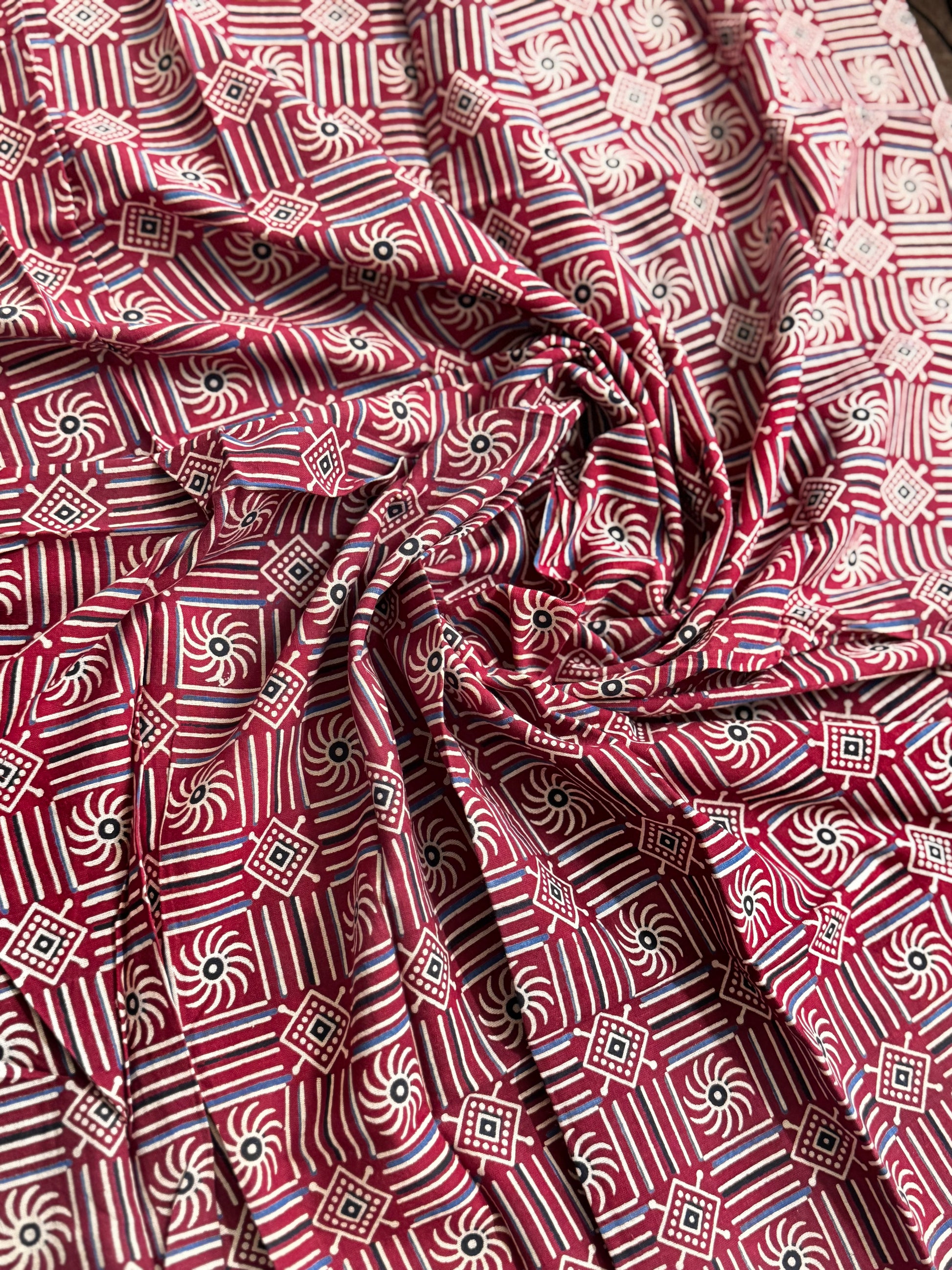 - Blouse Piece: Yes. Comes with its own Green Mul Cotton blouse and an extra RED AJRAKH HAND BLOCK PRINT Cotton blouse piece (100 cm). The last image gives a detailed look of the blouse piece that comes with this saree.